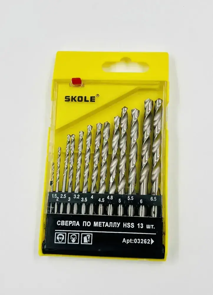Сверла по металлу Skole, набор 13шт в пластиковой упаковке