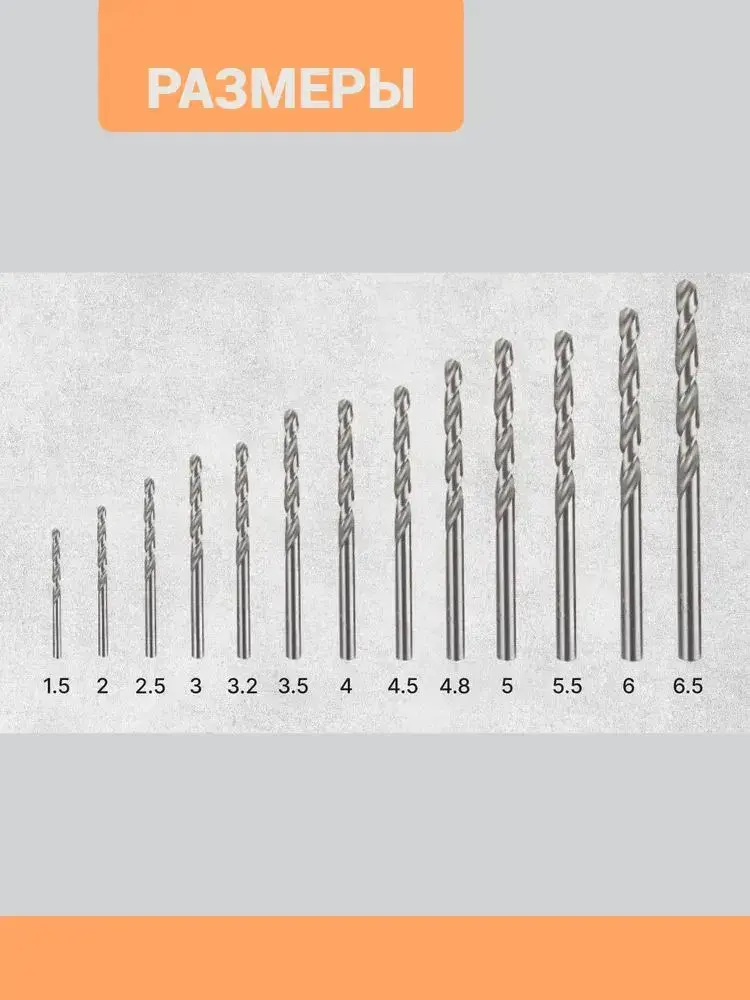 Сверла по металу 1,5 - 6,5 мм. Набор сверл HSS 13 шт.