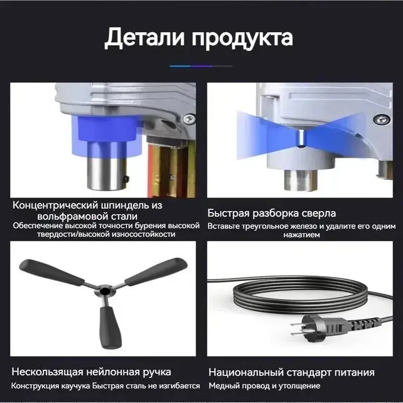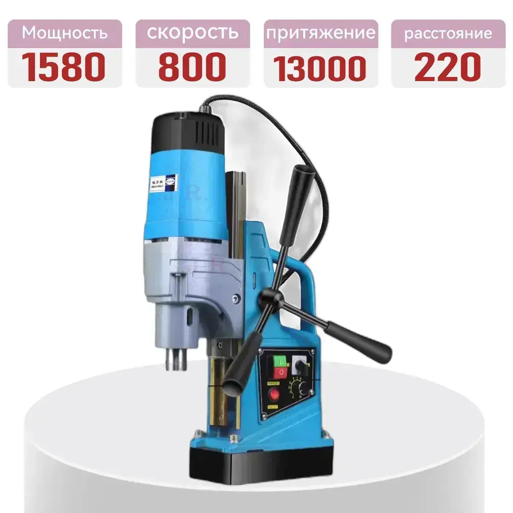 Сверление отверстий с магнитным седлом промышленного класса, 1580 Вт/1300 Н/800 об/мин, регулируемая скорость сверления и реверсирования резьбы