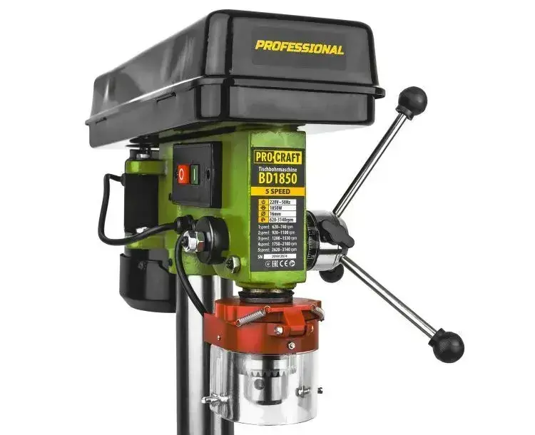 Сверлильный станок Procraft BD1850, патрон 16 мм, 450 Ватт, 5 скоростей, 3140 об/мин