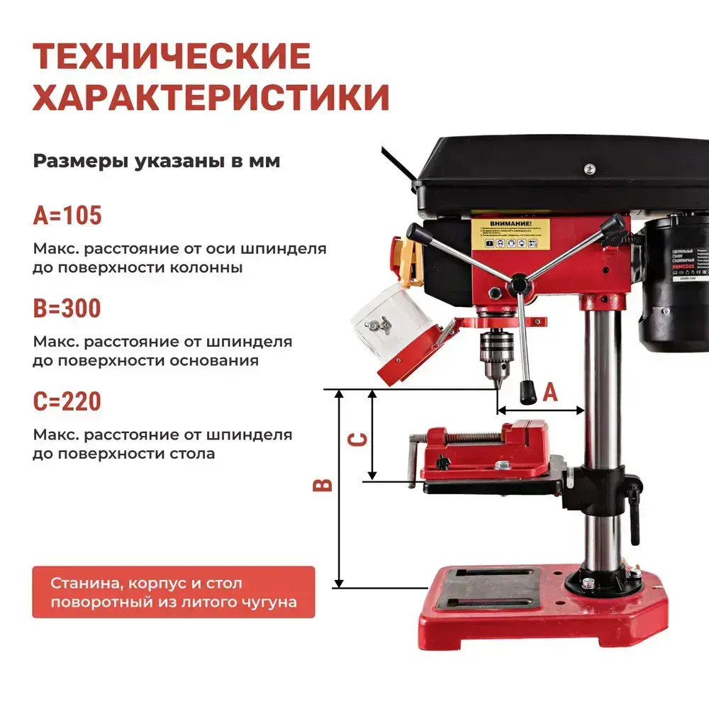 Сверлильный станок стационарный NUMBER ONE NBM 550S (550Вт,5 скоростей,13мм,580-2650об/мин,16кг)+тиски,№1