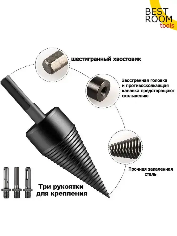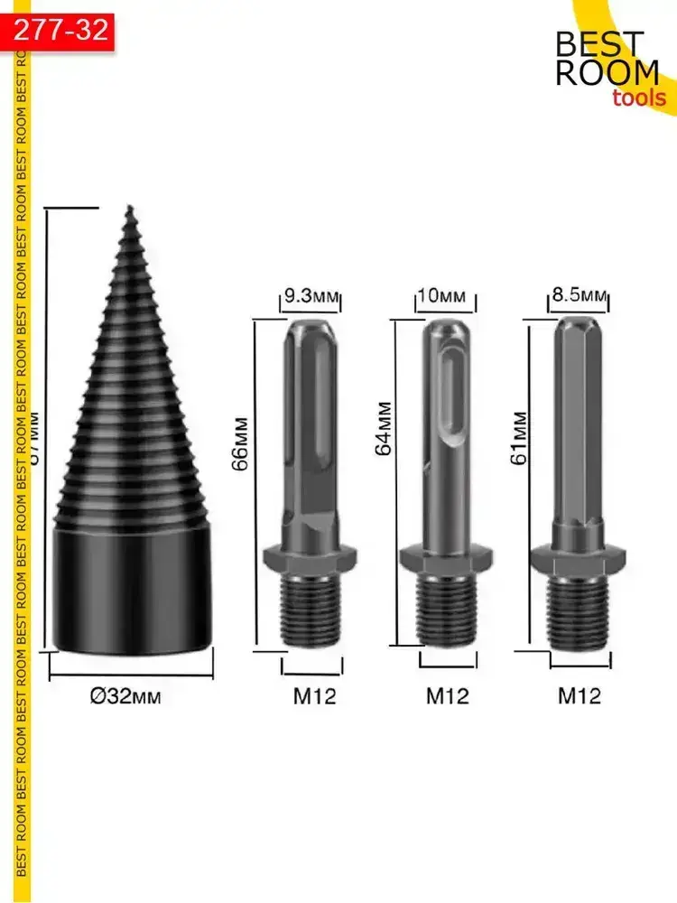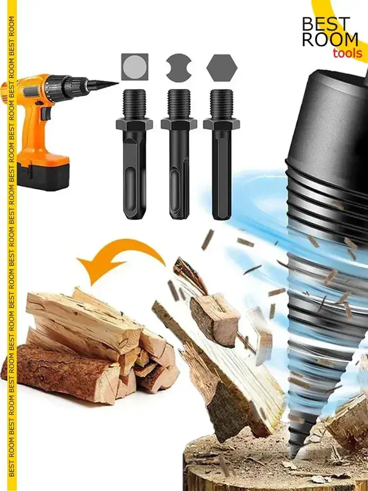 Сверло для колки дров на перфоратор, дрель, диаметр 32мм,Квадратный, Круглый и Шестигранный Хвостовик