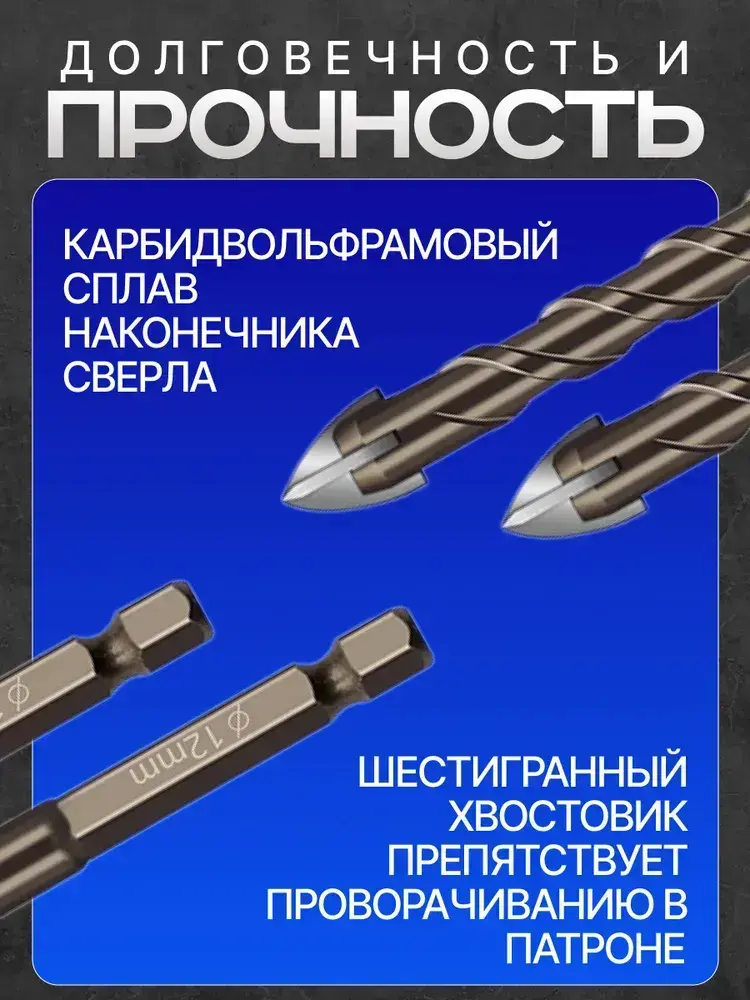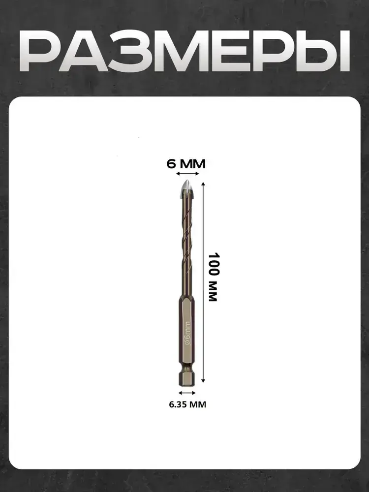 Сверло копьевидное по керамике и стеклу диаметр 6мм (2шт)