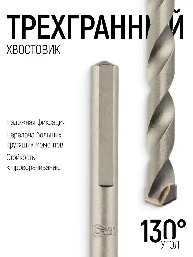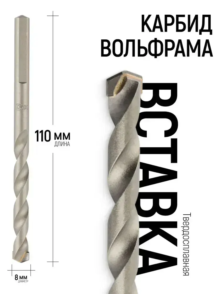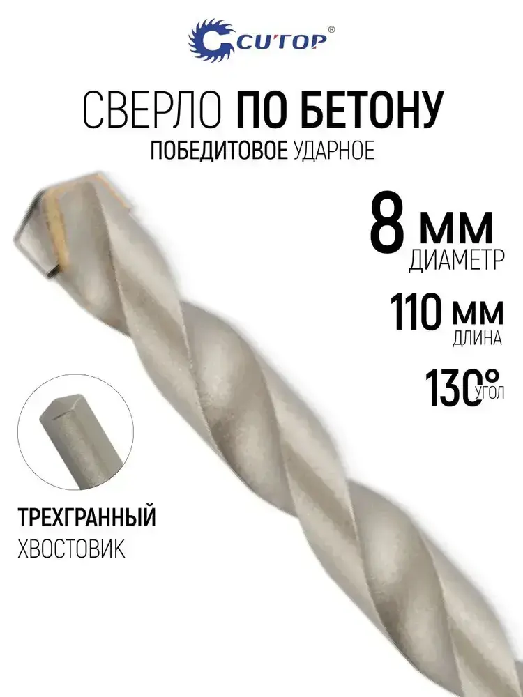 Сверло по бетону ударное 8 х 110 мм, трехгранный хвостовик