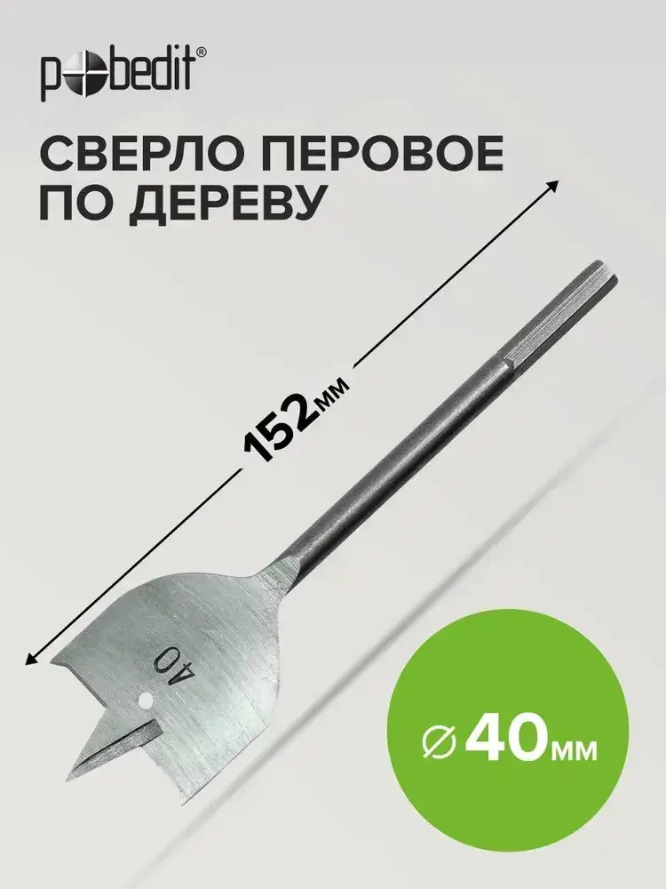 Сверло по дереву перовое 40 мм х 152 мм Pobedit