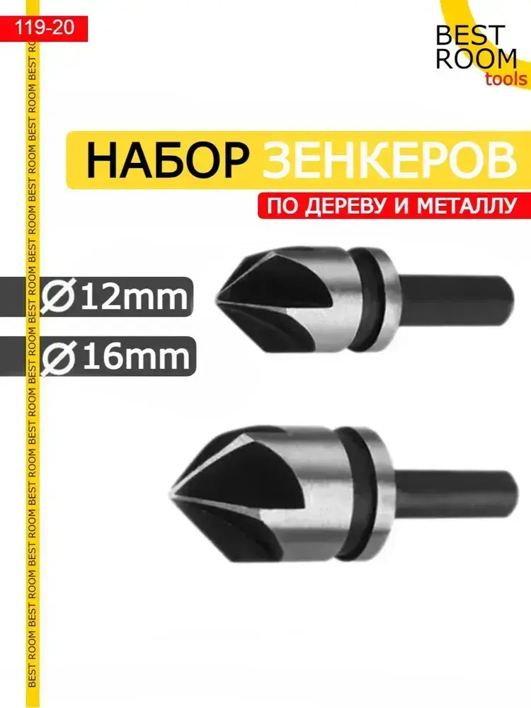 Сверло по дереву, зенкер для снятия фаски канавки под саморезы, насадка набор из 2х шт. 12, 16, фреза зенковка