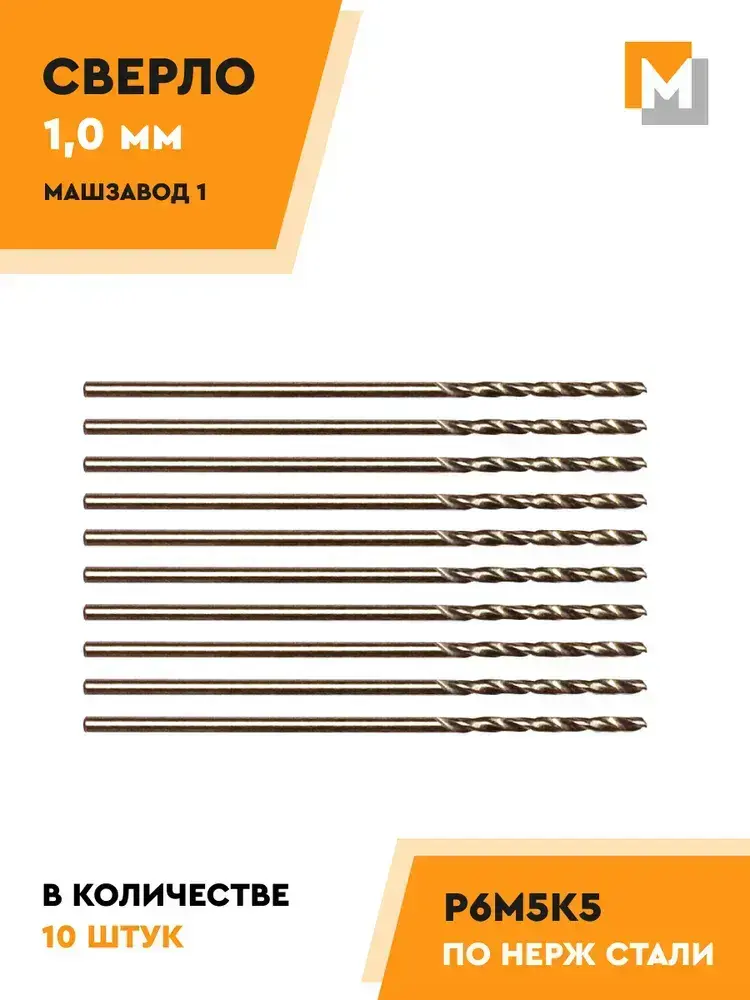 Сверло по металлу 1.0 мм - 10 шт. Р6М5К5 кобальтовое МАШЗАВОД 1