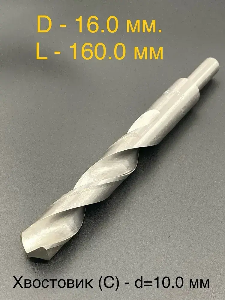 Сверло по металлу 16,0 мм, быстрорежущая сталь (HSS) с цилиндрическим хвостовиком d-10,0 мм