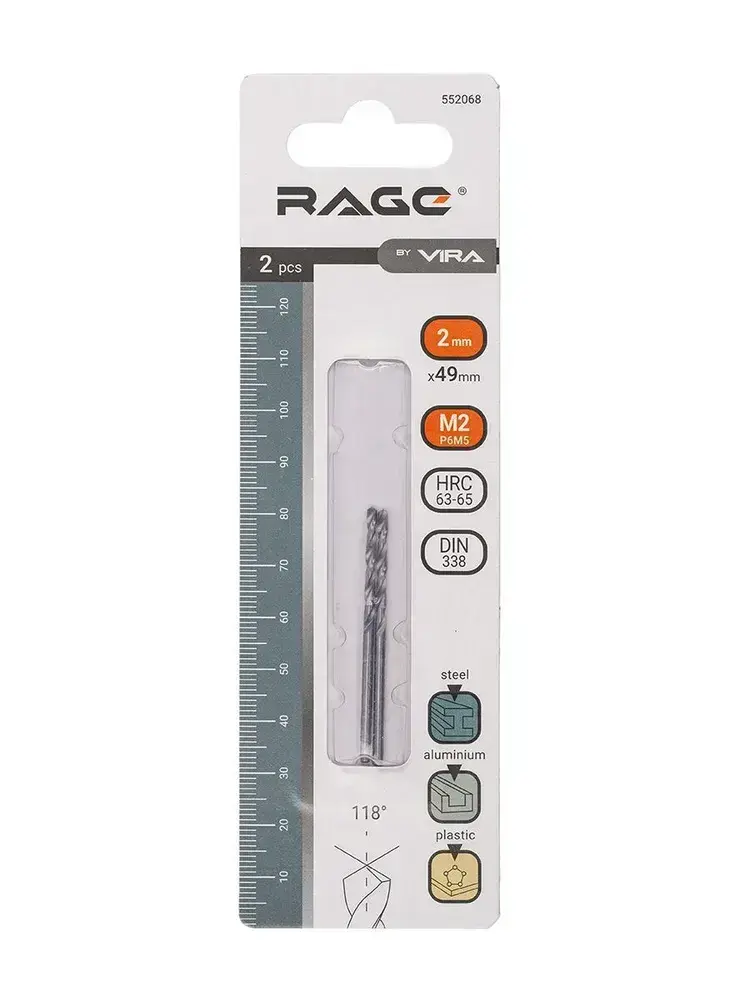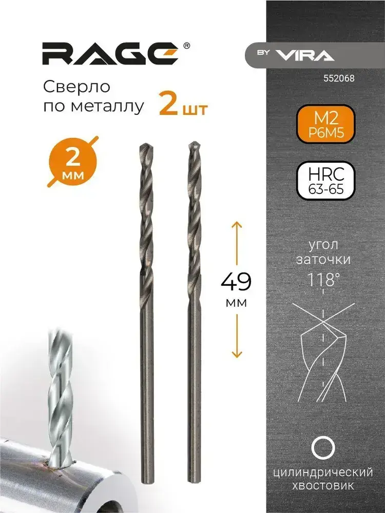 Сверло по металлу 2 мм P6M5 2 шт RAGE by VIRA