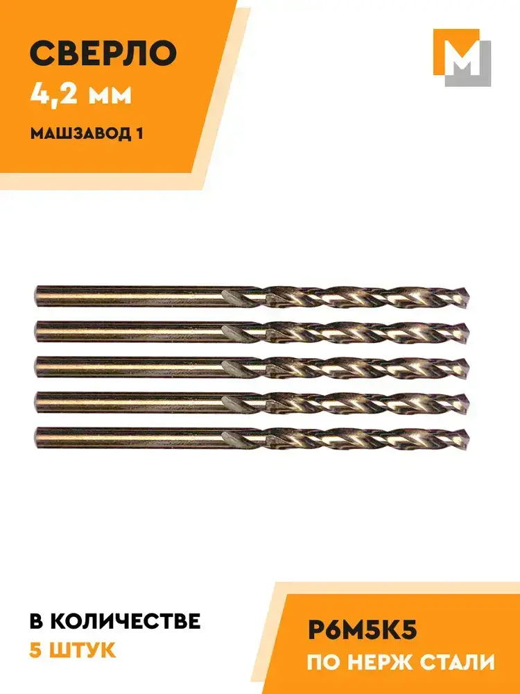 Сверло по металлу 4,2 мм - 5 шт. Р6М5К5 кобальтовое МАШЗАВОД 1