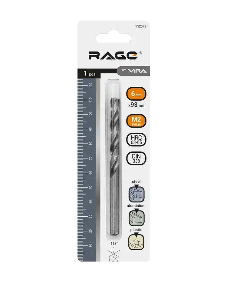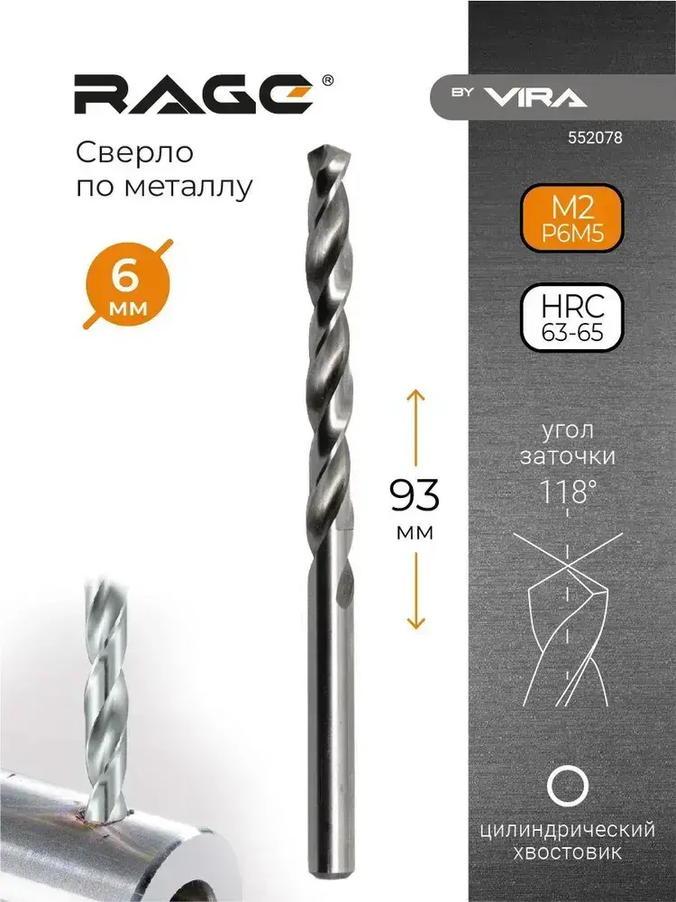 Сверло по металлу 6 мм P6M5 1 шт RAGE by VIRA
