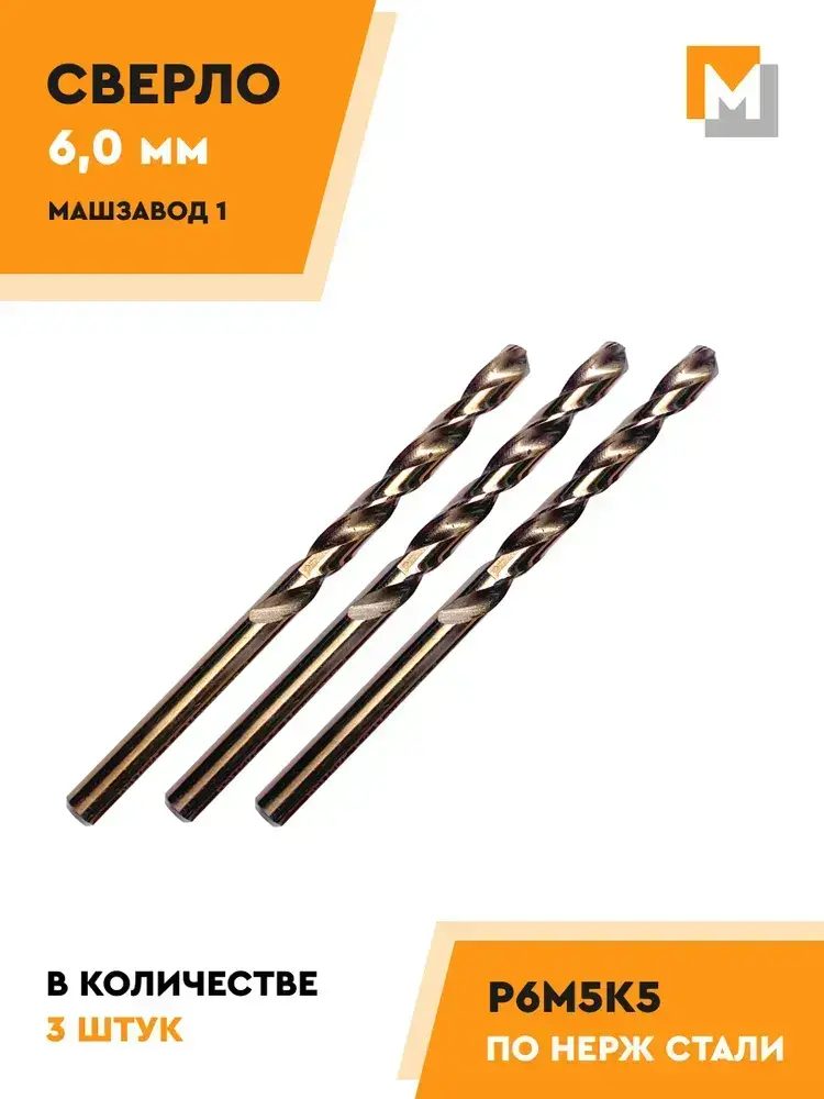 Сверло по металлу 6,0 мм - 3 шт. Р6М5К5 кобальтовое МАШЗАВОД 1