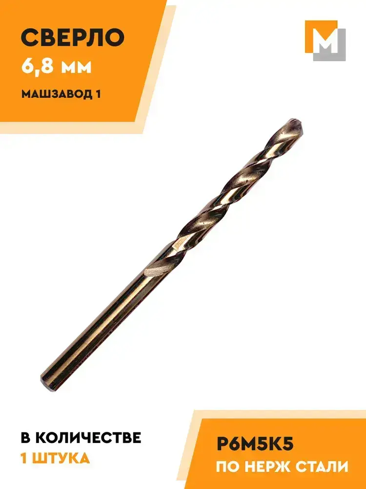 Сверло по металлу 6,8 мм Р6М5К5 кобальтовое МАШЗАВОД 1