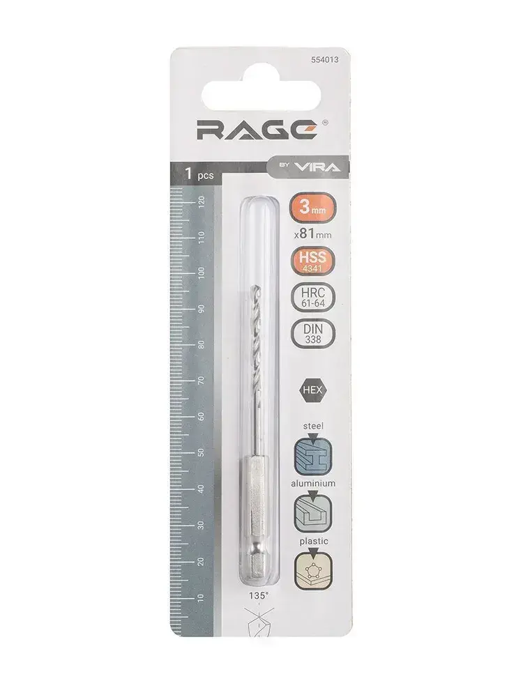 Сверло по металлу с шестигранным хвостовиком 3 мм RAGE by VIRA