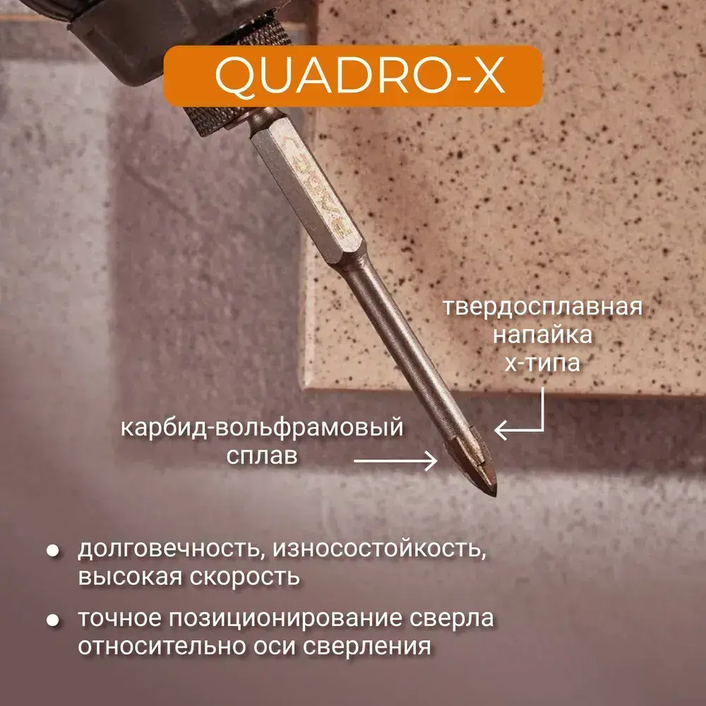 Сверло по стеклу и керамике 8 мм Quadro-X HEX RAGE by VIRA