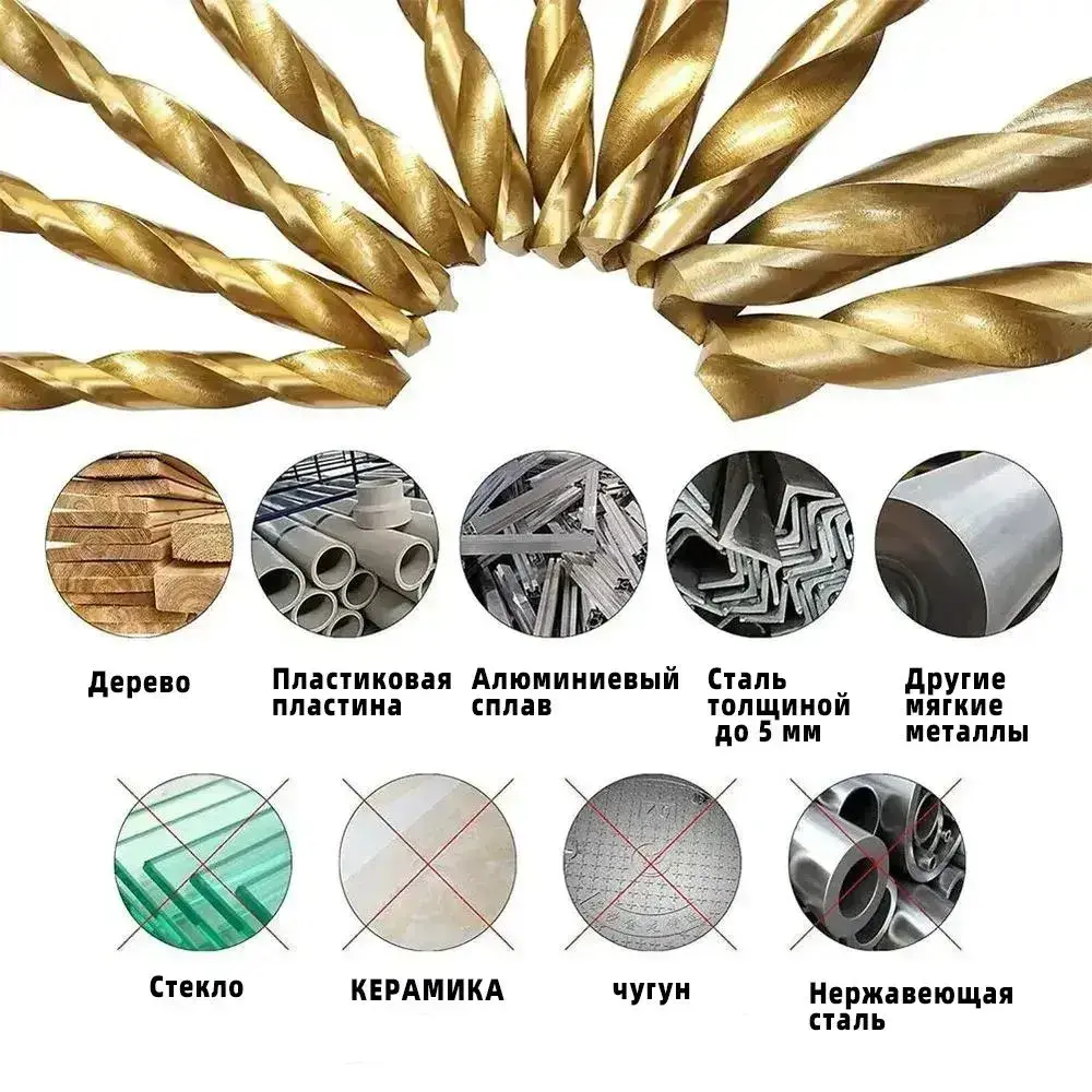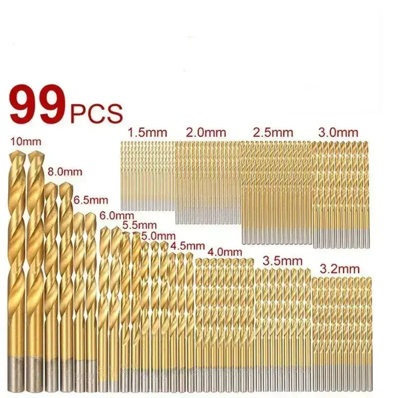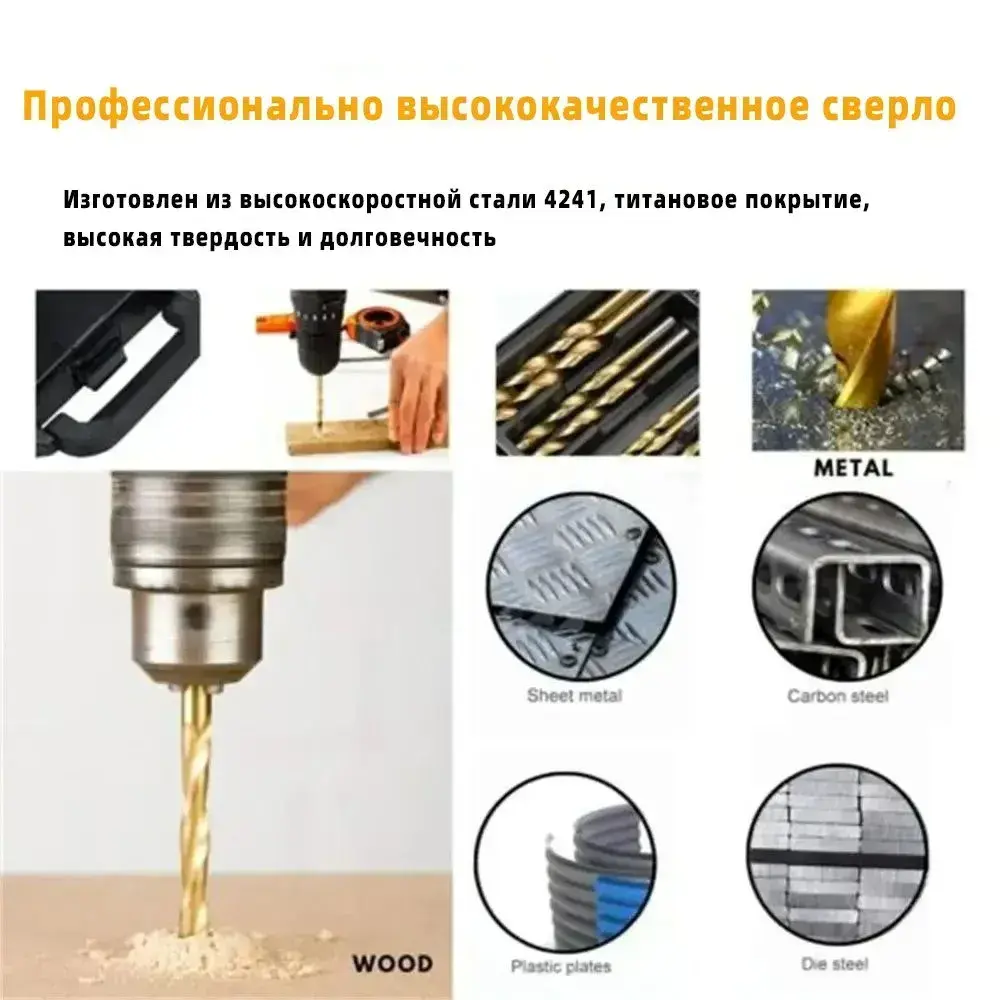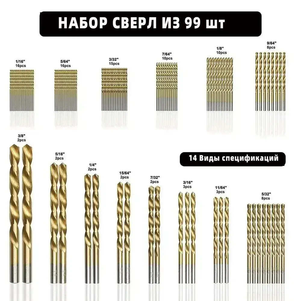 Сверло с круглый хвостовик по металлу, дереву, пластику, набор 99 шт (от 1.5мм до 10мм), Большой набор сверл