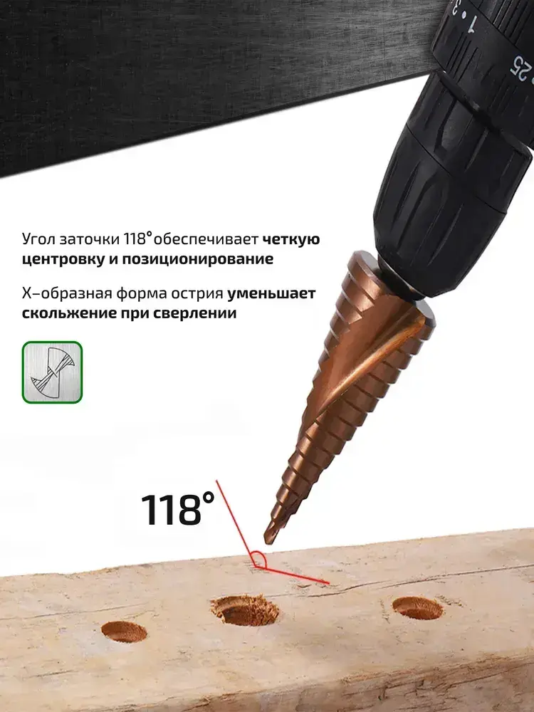 Сверло ступенчатое по металлу кобальтовое 4-32мм конусное