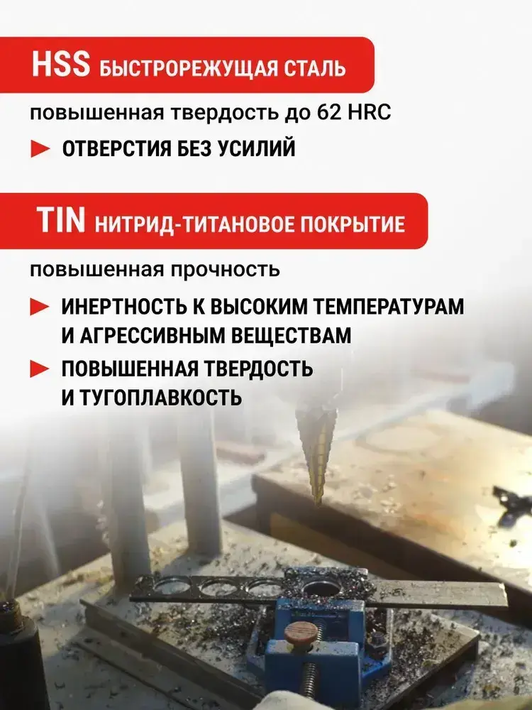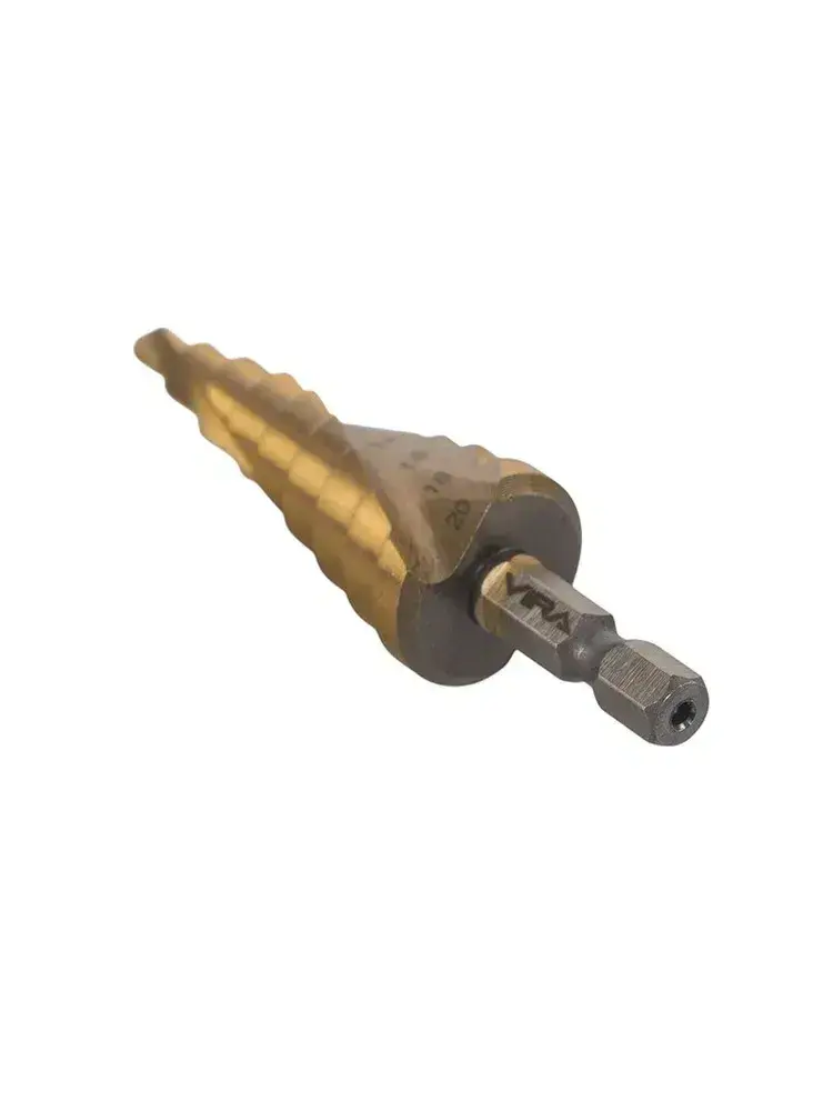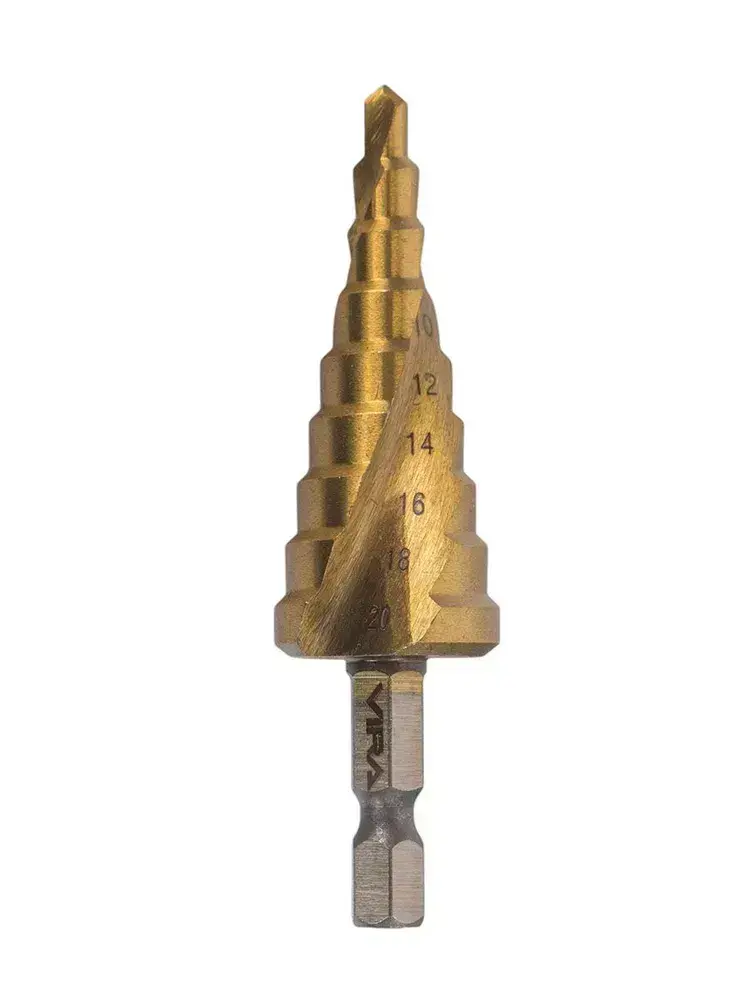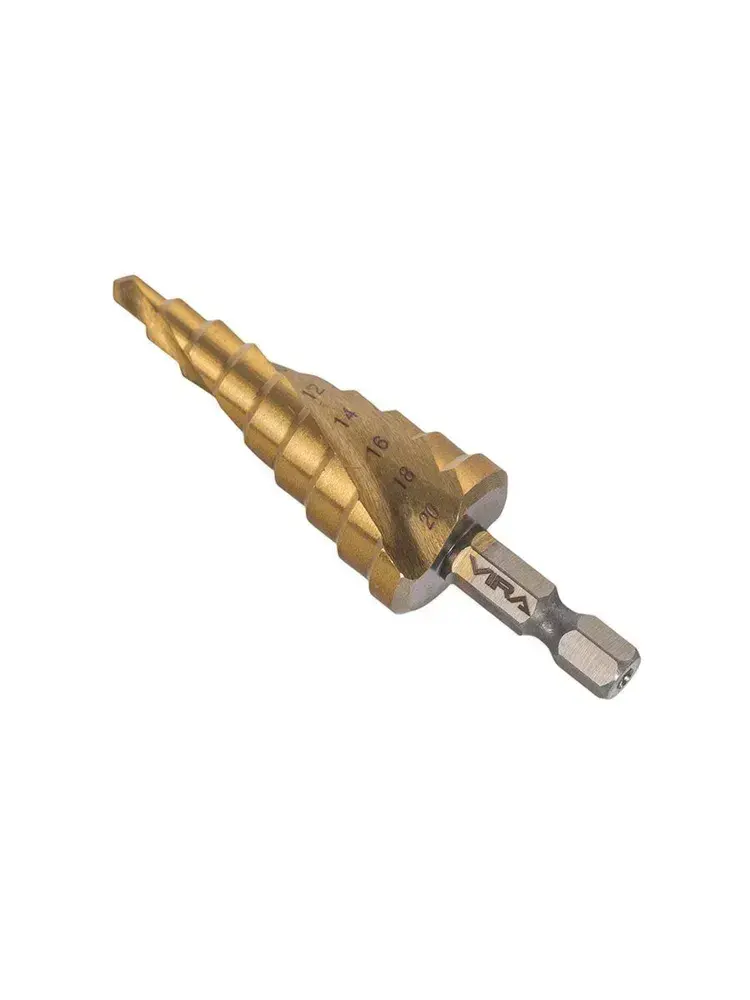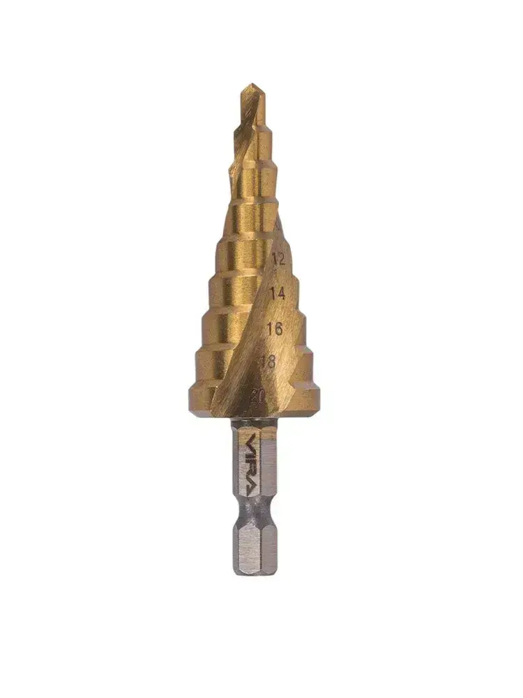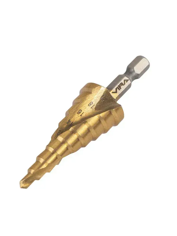 Сверло ступенчатое спиральное по металлу TiN с шестигранным хвостовиком 4-20 мм VIRA