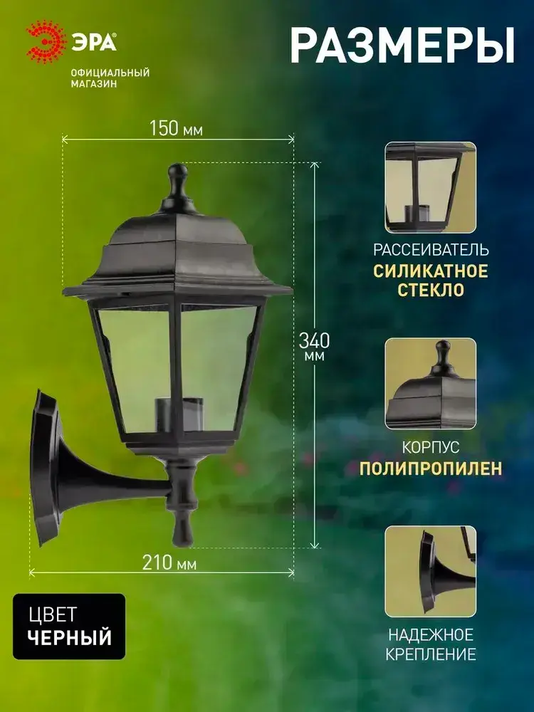 Светильник фонарь уличный настенный фасадный ЭРА НБУ 04 Е27 60Вт 220в, ретро