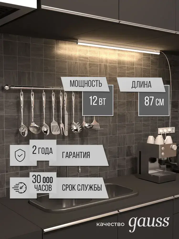 Светильник Gauss TL Elementary линейный 12Вт 1000Лм 4000K IP20 870х22х33 LED