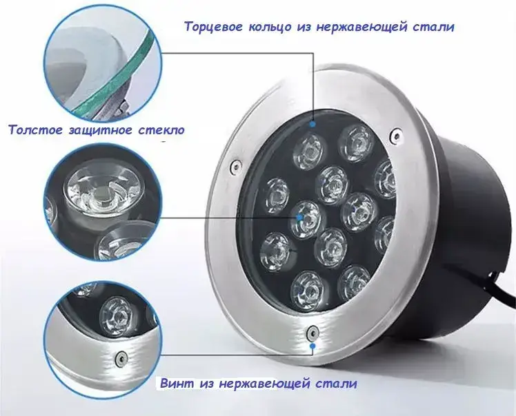 Светильник грунтовый 12Вт 3000К IP67, встраиваемый