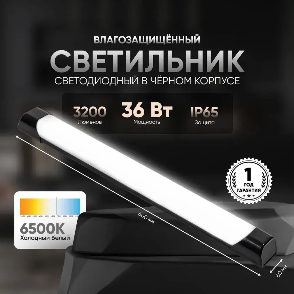 Светильник линейный уличный 36Вт 6500К холодный белый свет в стильном черном корпусе. Размер 600х60х45мм