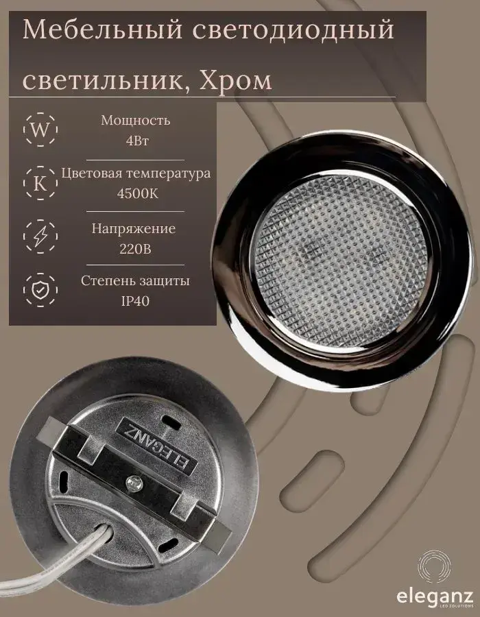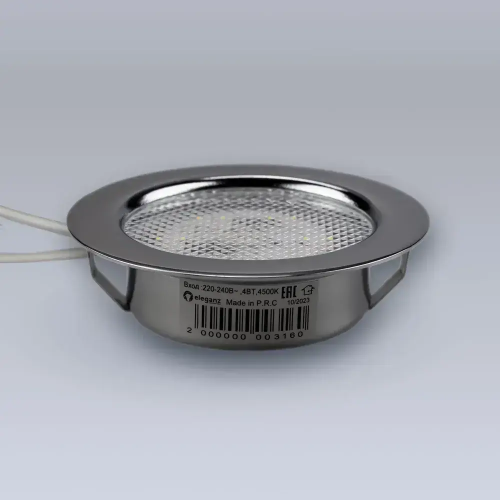 Светильник мебельный встраиваемый светодиодный "Eleganz 4W 220V", цвет хром, корпус Металл, круглый, 4500К, IP 40