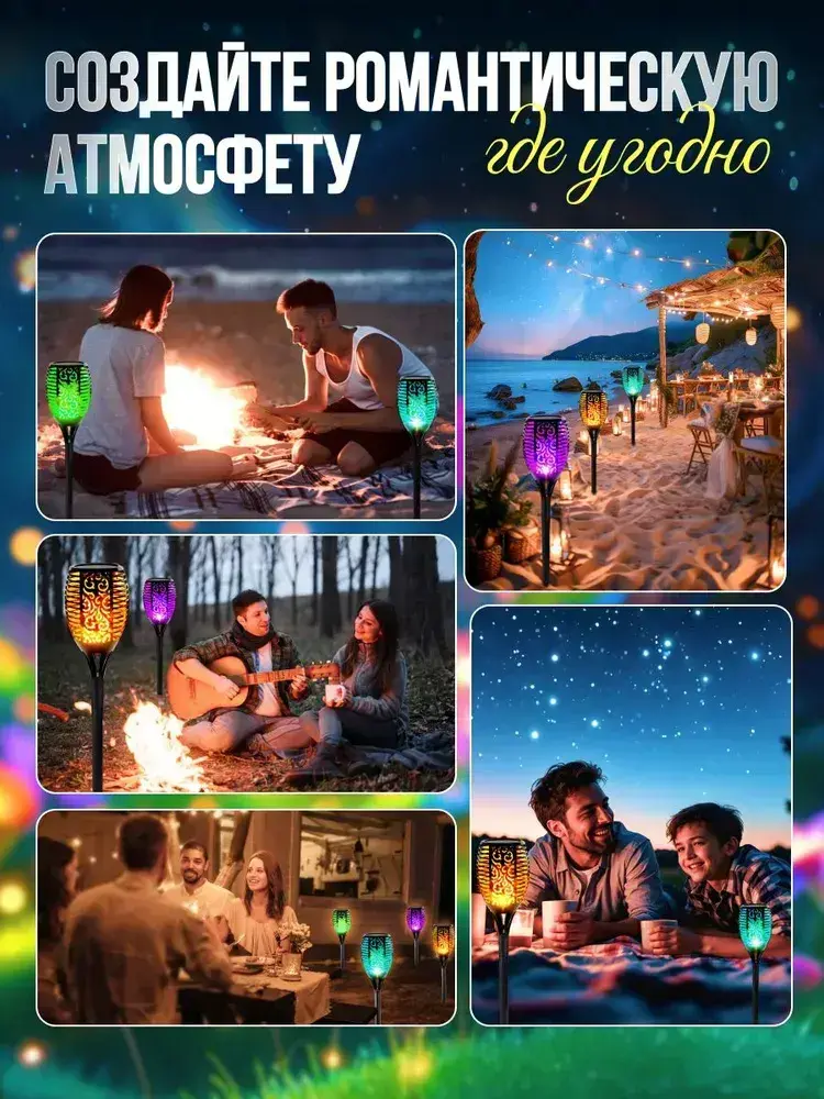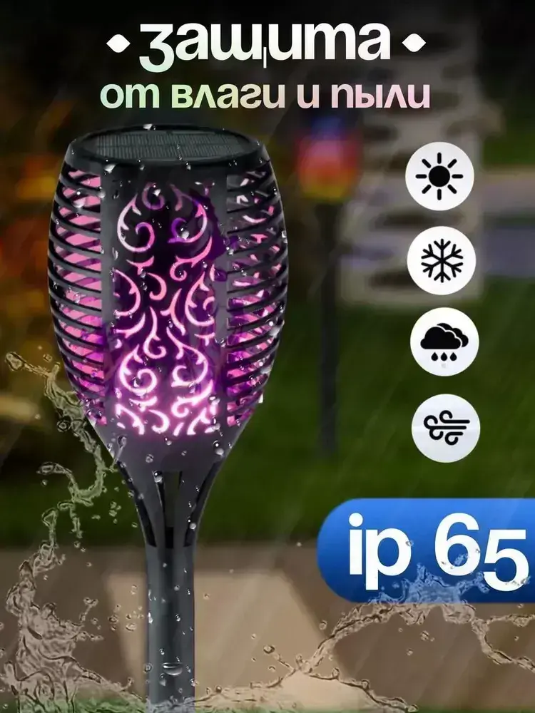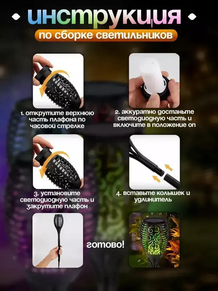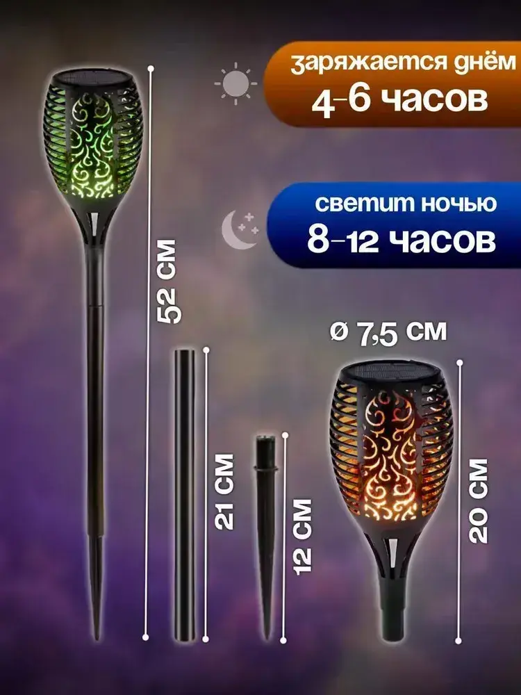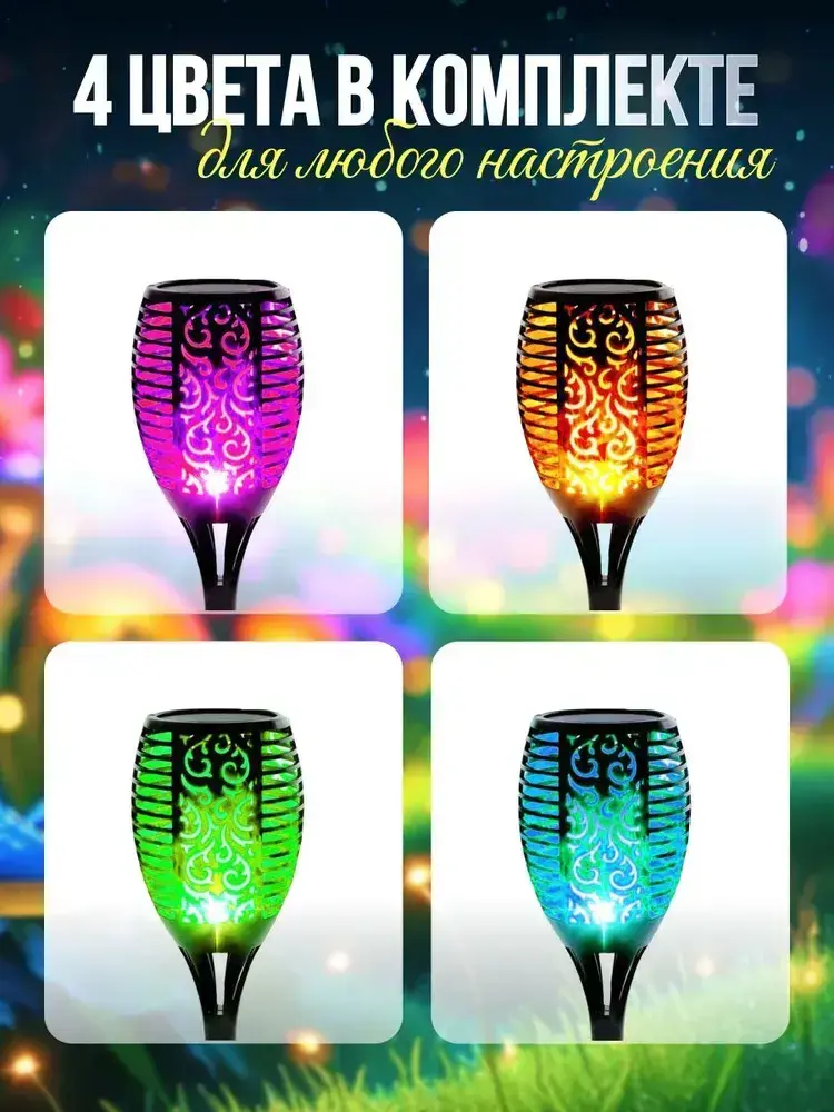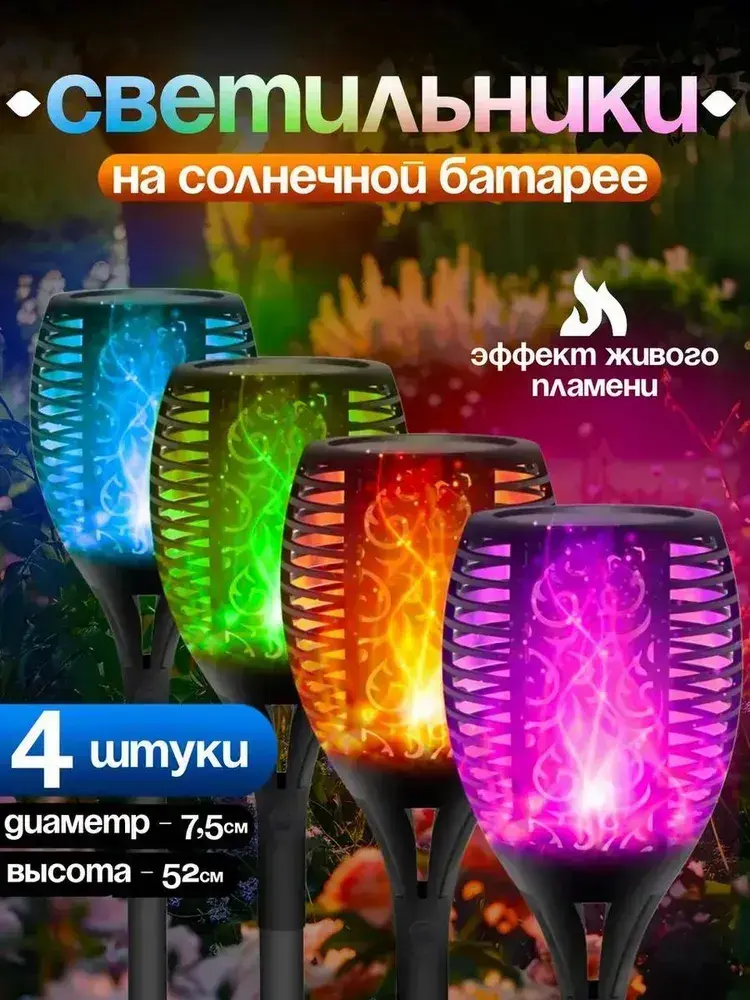 Светильник на солнечной батарее уличный 4 шт., светодиодный. Фонарь с разноцветным пламенем 52 см., Для сада, дачи