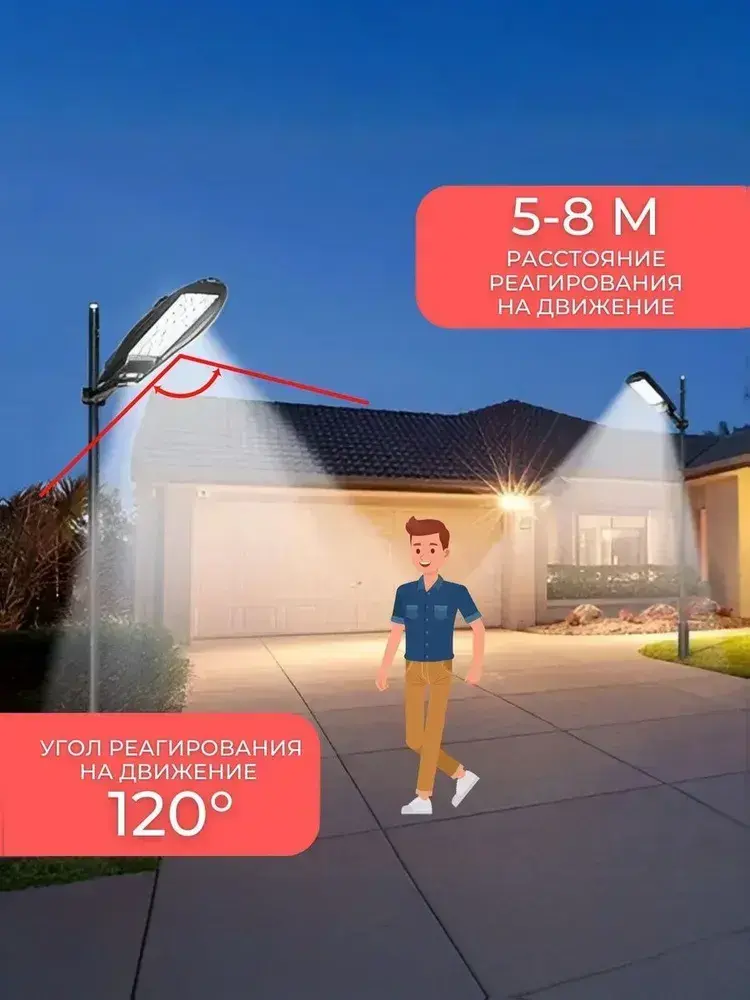 Светильник на солнечной батарее уличный, Аккумуляторный, С датчиком движения, Водонепроницаемый, Мощный