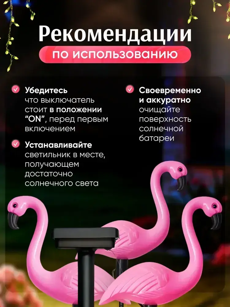 Светильник на солнечной батарее уличный Фламинго / Фонарики садовые
