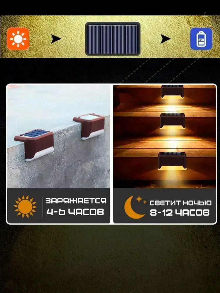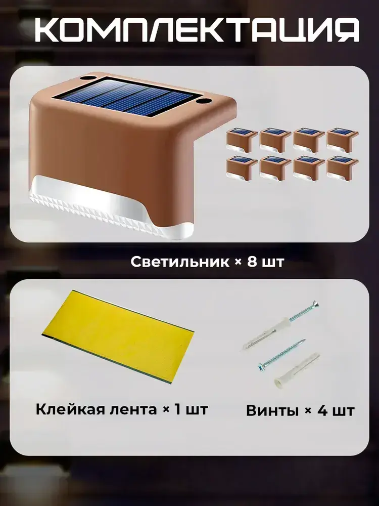 Светильник на солнечной батарее уличный / фонарики садовые на солнечных батареях 8 шт, цвет коричневый, Conflate