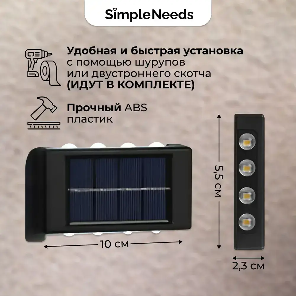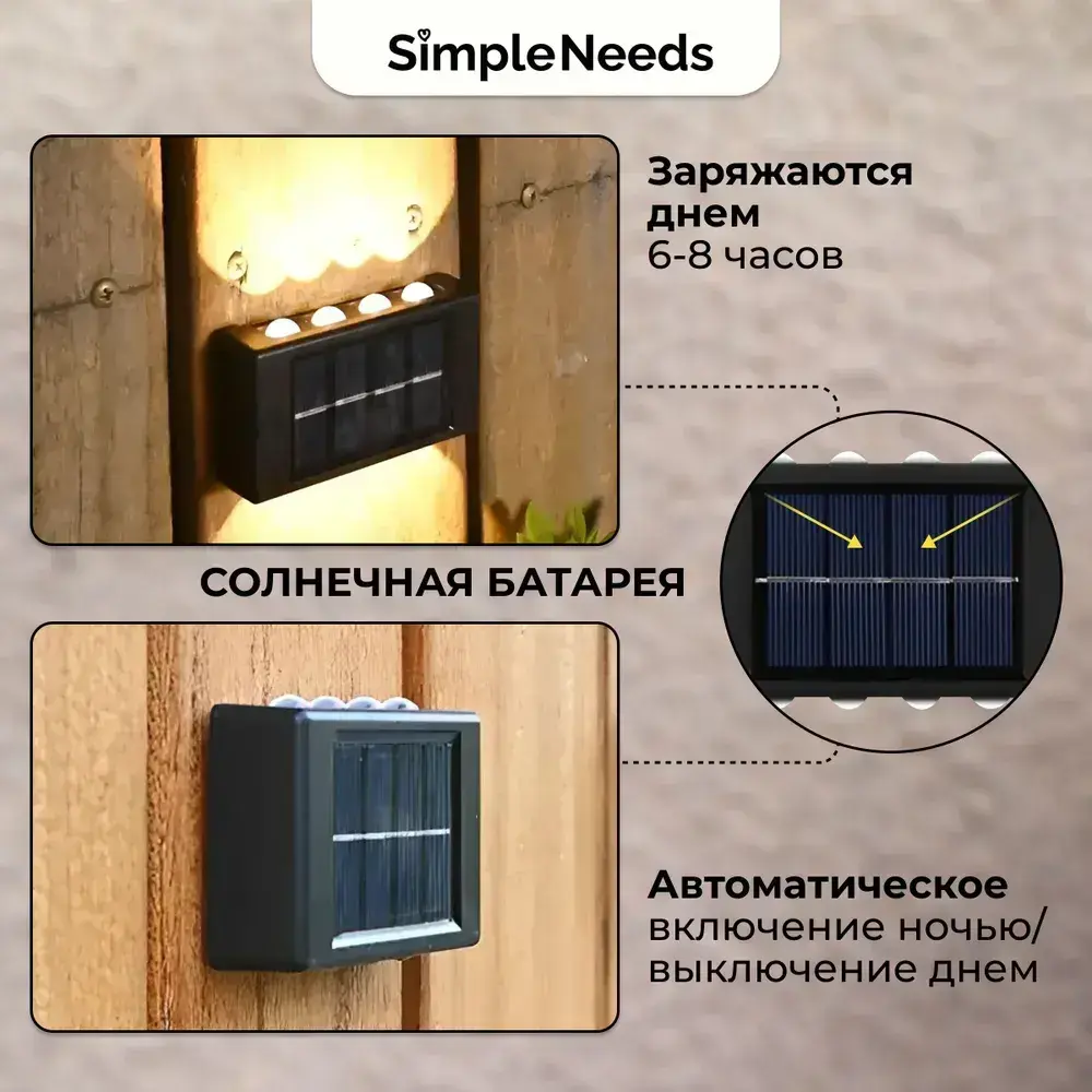 Светильник на солнечной батарее уличный, настенный 8 ламп, в наборе 2 шт