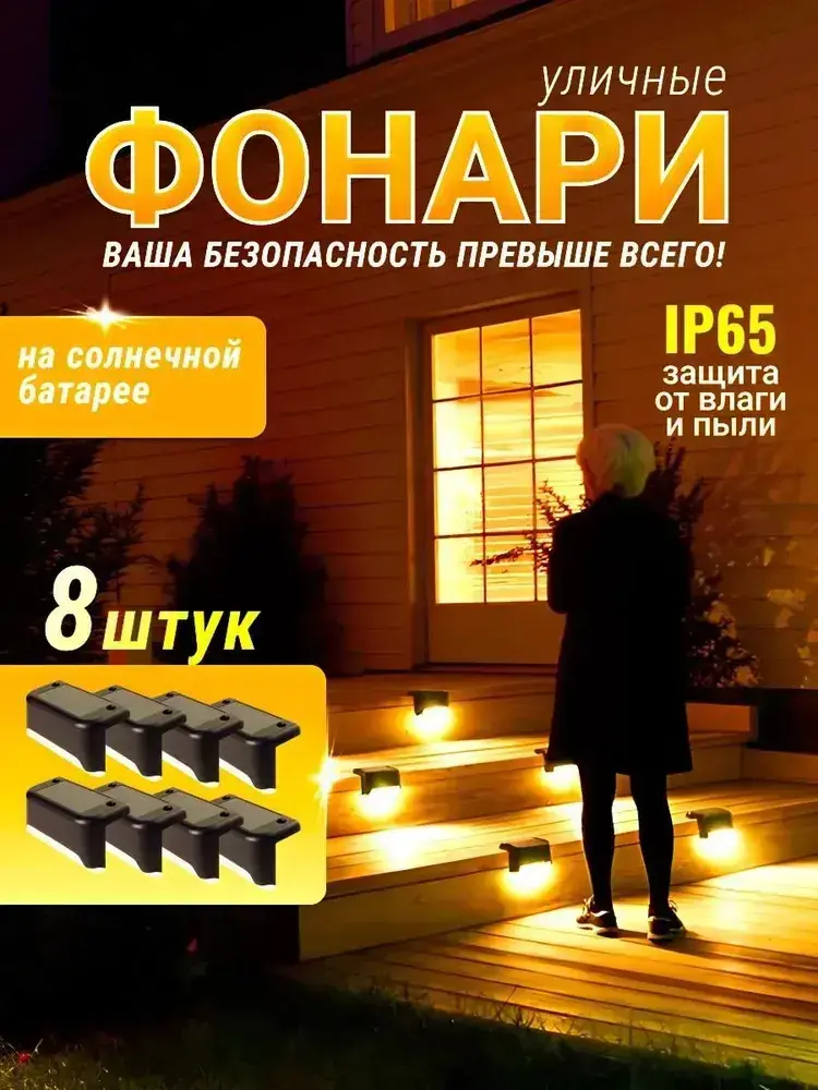 Светильник на солнечной батарее уличный садовый фонарик угловой с датчиком освещенности 8 шт для подсветки фасадов дорожек сада ступеней и выступов