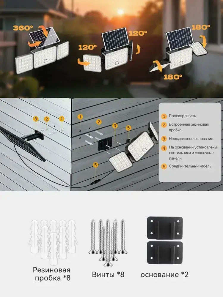 Светильник на солнечной батарее уличный, светильник настенный,100 Вт, используется в подвале, гараже