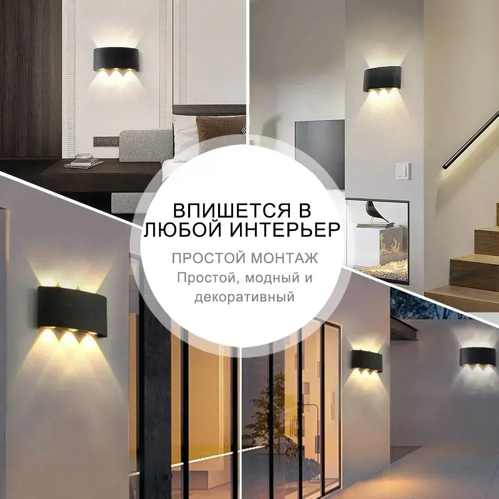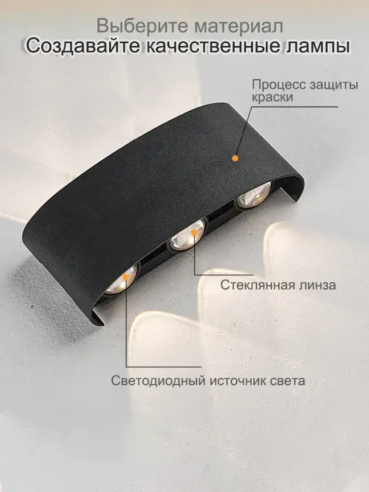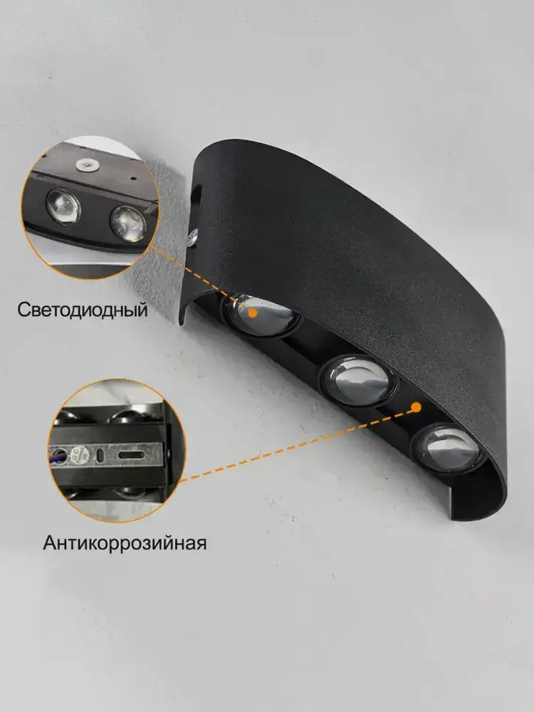 Светильник настенный светодиодный, 6 Вт, Бра, Чёрный