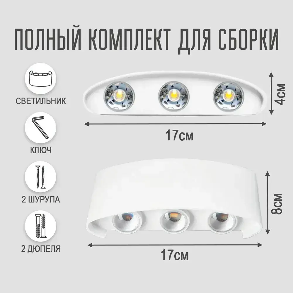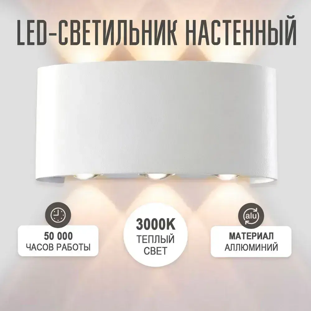 Светильник настенный светодиодный, для дома и улицы, 3000К, 6 Вт, IP65