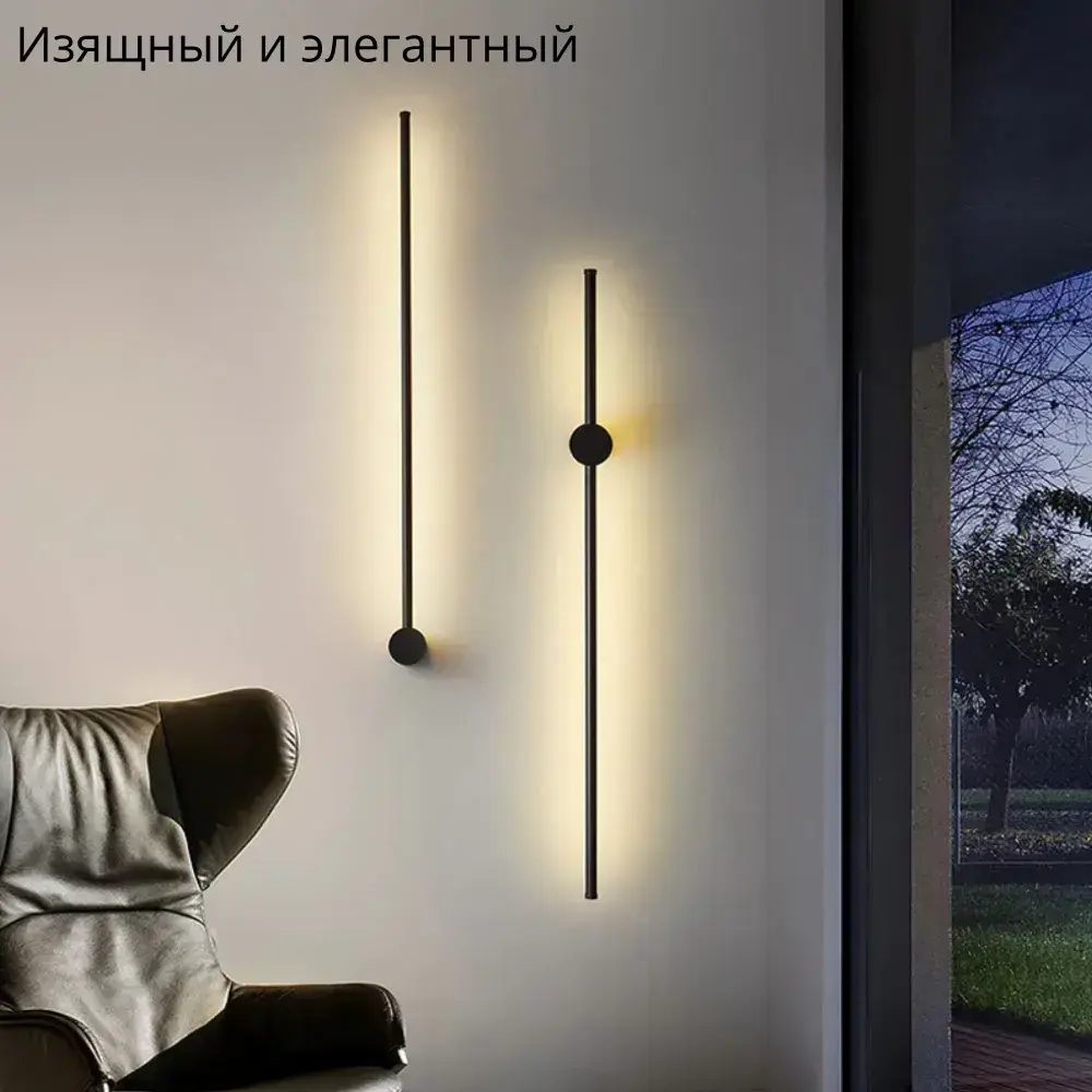 Светильник настенный светодиодный линейный 20 Вт, 4000 К, 100 см, черный