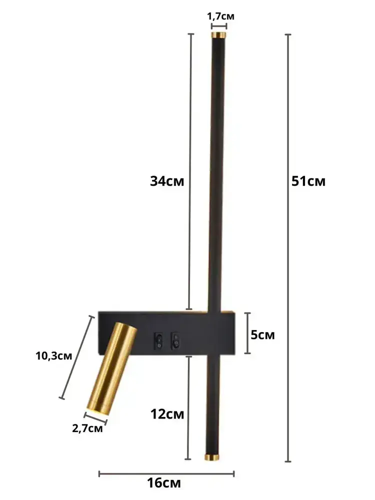 Светильник настенный светодиодный линейный, 4000K, 10Вт, 51 см, левый