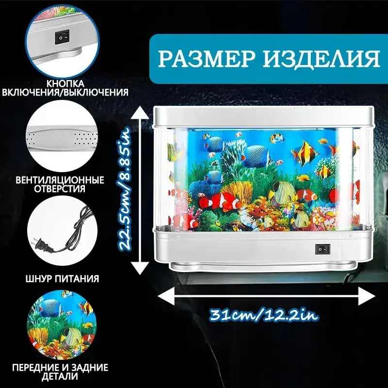 Светильник-ночник "Аквариум" с движущимися рыбками для детей и взрослых, оптимальный размер