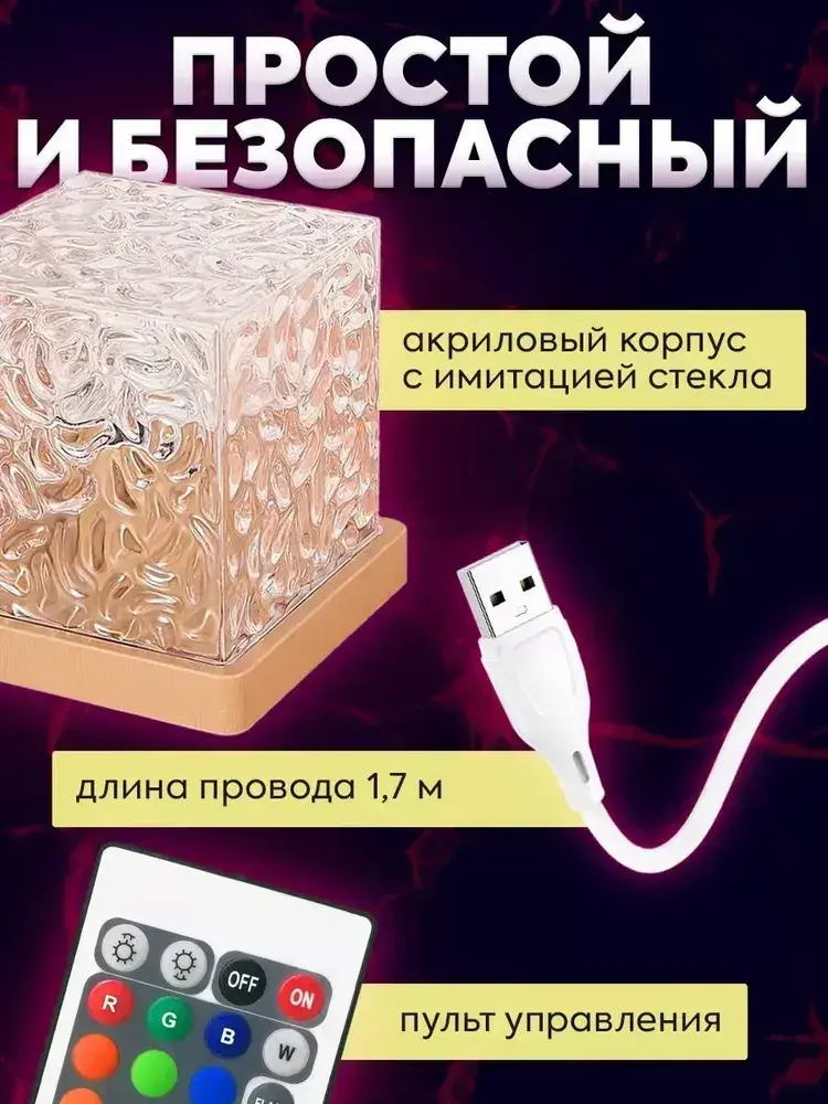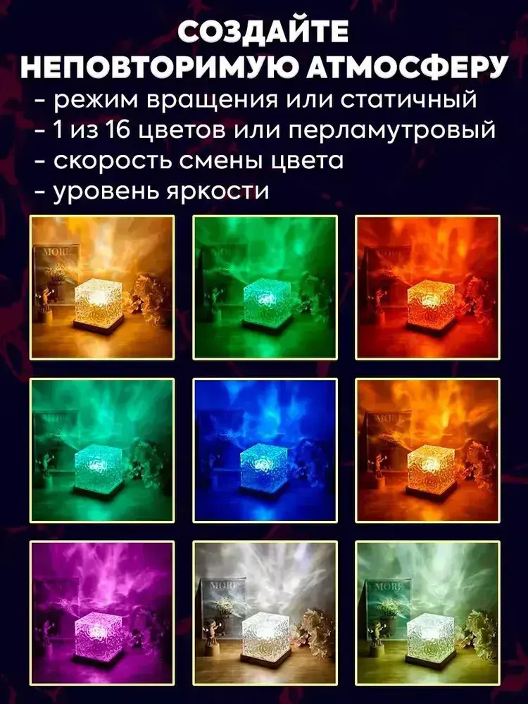 Светильник ночник настольный Северное сияние, с пультом, 16 режимов / Conflate