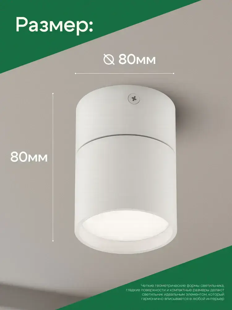 Светильник потолочный точечный накладной цилиндр спот поворотный белый под лампу GX53