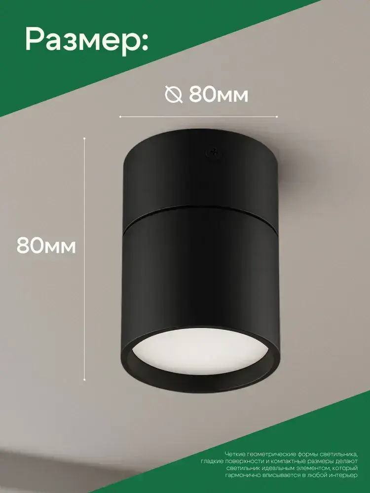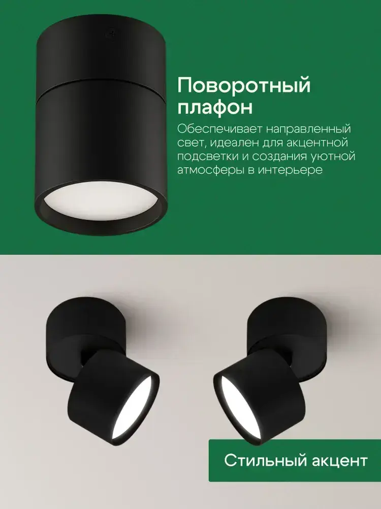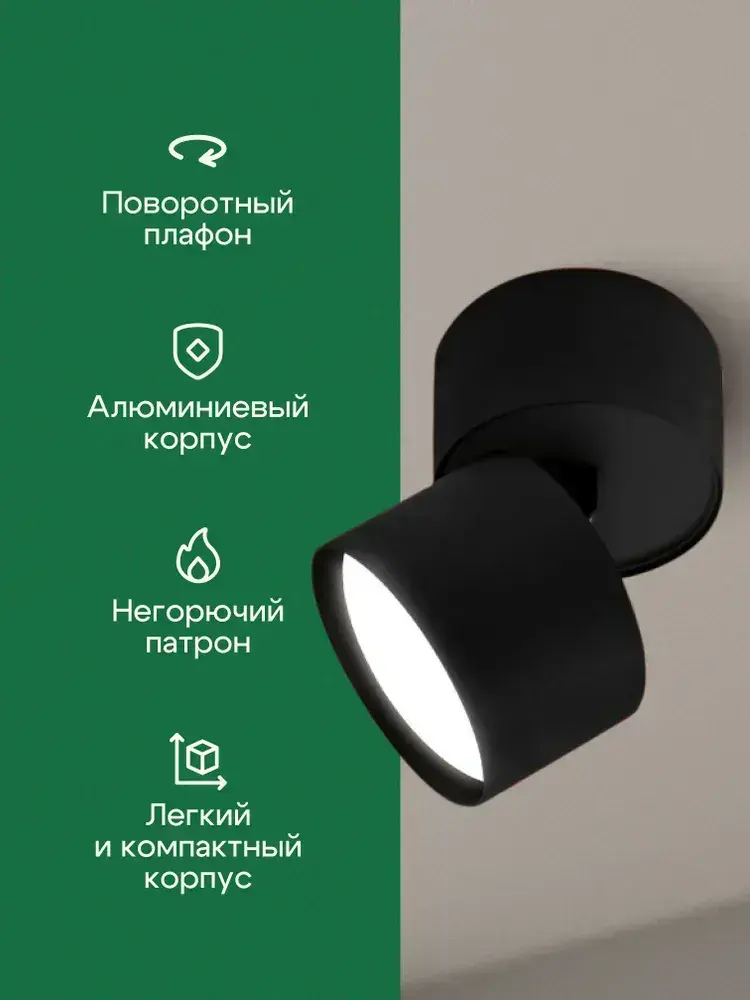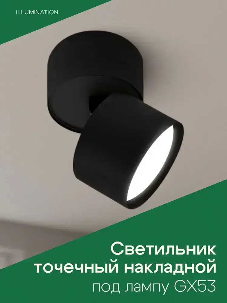 Светильник потолочный точечный накладной цилиндр спот поворотный черный под лампу GX53