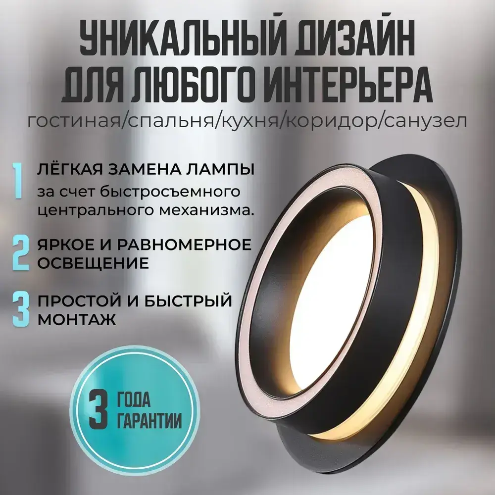Светильник потолочный встраиваемый GX53, спот точечный черный светодиодный