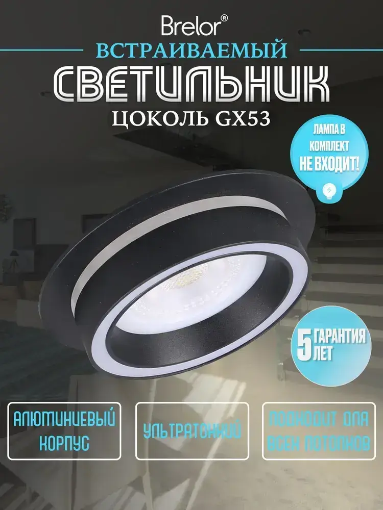 Светильник потолочный встраиваемый GX53, точечный черный Brelor