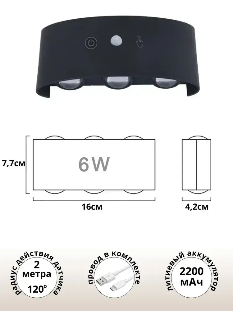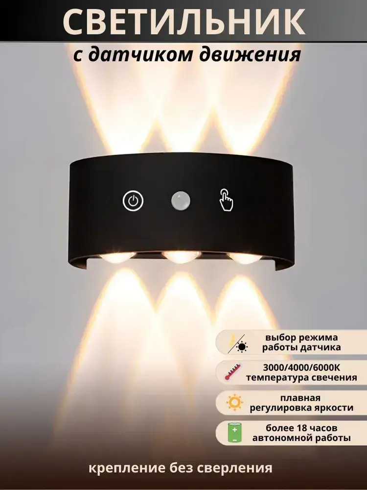 Светильник с датчиком движения беспроводной, 3000-6000К, 6Вт
