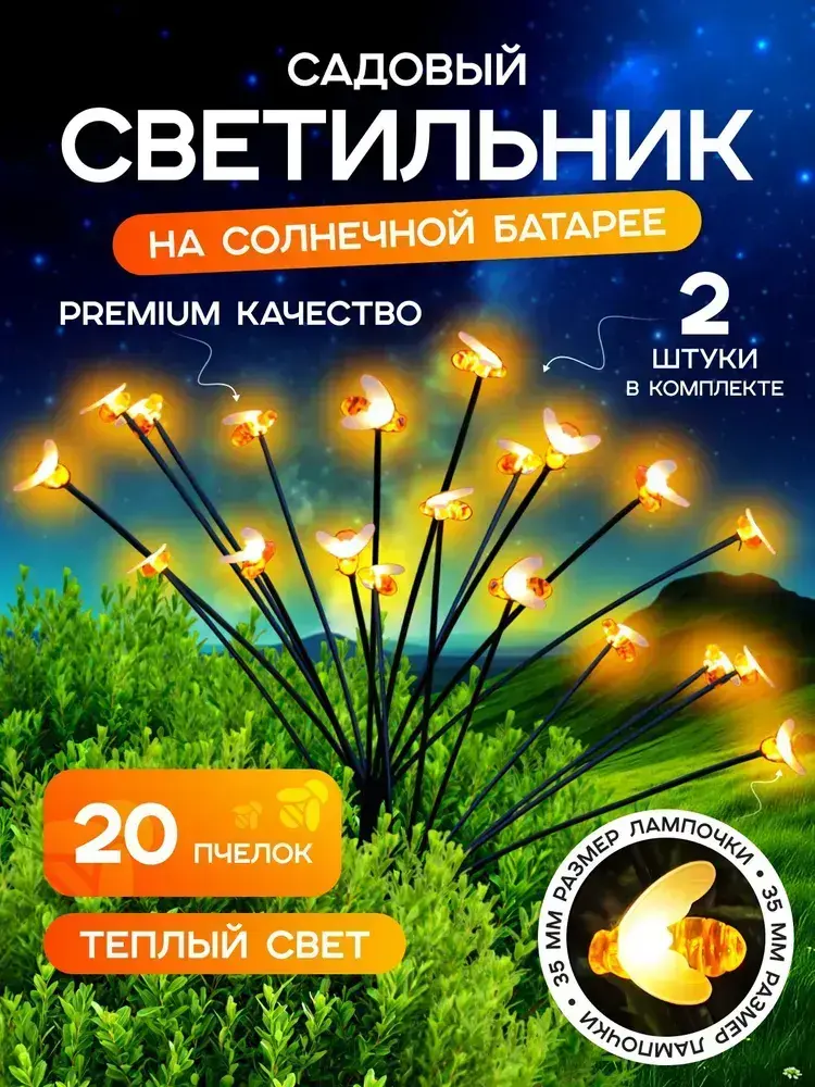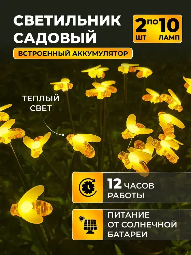 Светильник садовый на солнечной батарее, 2 шт./ Уличный фонарик
