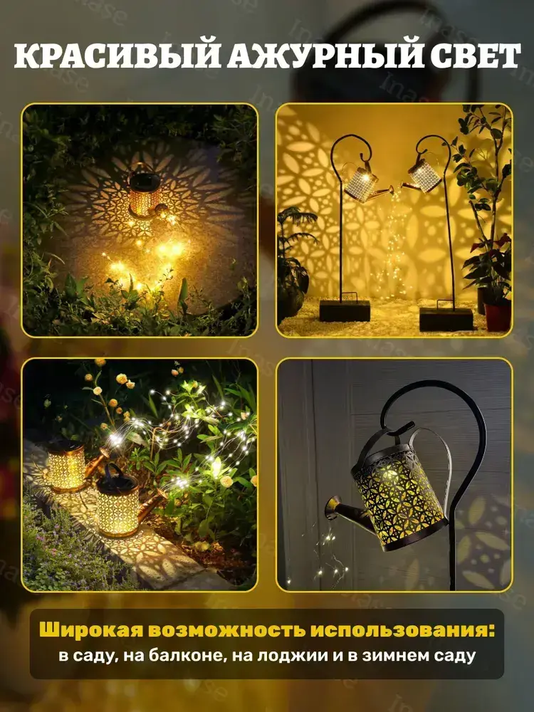 Светильник садовый на солнечной батарее ''Сказочная лейка'' с гирляндой 50 см.