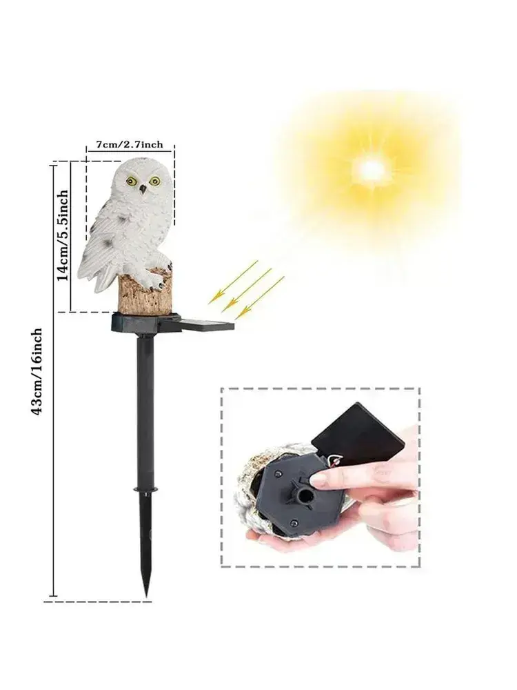 Светильник садовый на солнечной батарее уличный, фигурка садовая Сова, 1 шт.