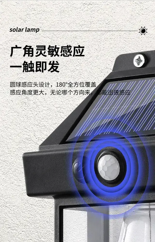светильник садовый на солнечной батарее уличный настенный с датчиком движения