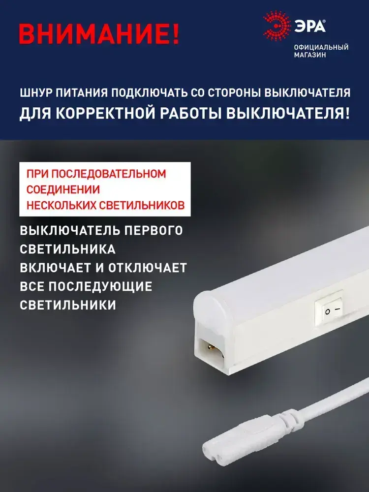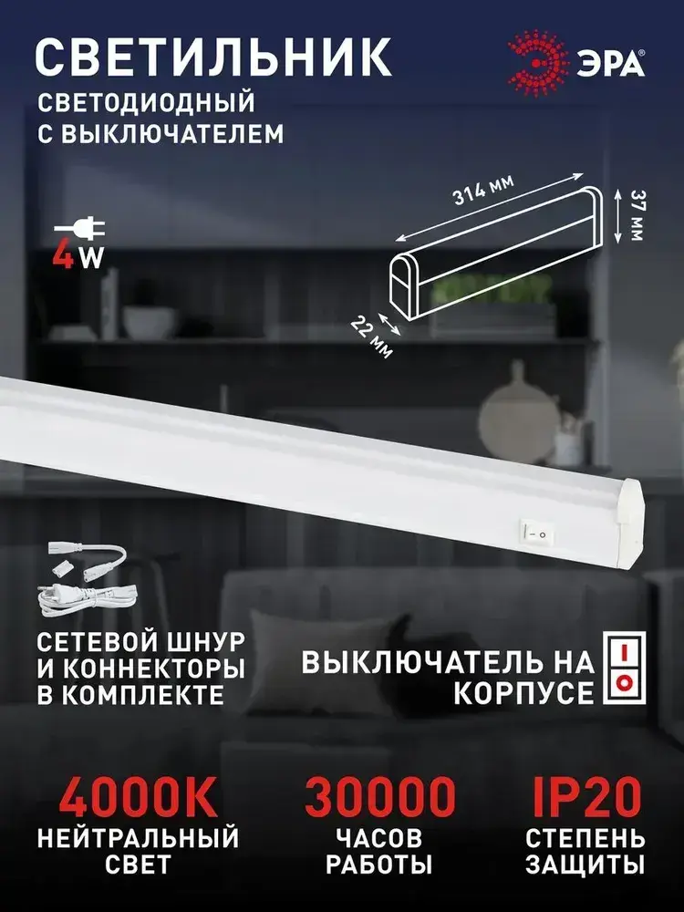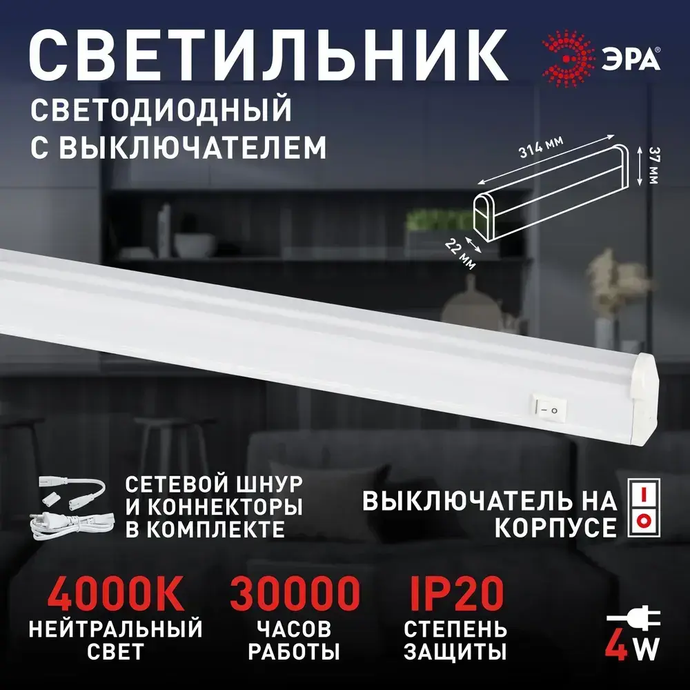 Светильник светодиодный линейный ЭРА LLED-01 на кухню с выключателем 314мм 4Вт 4000K